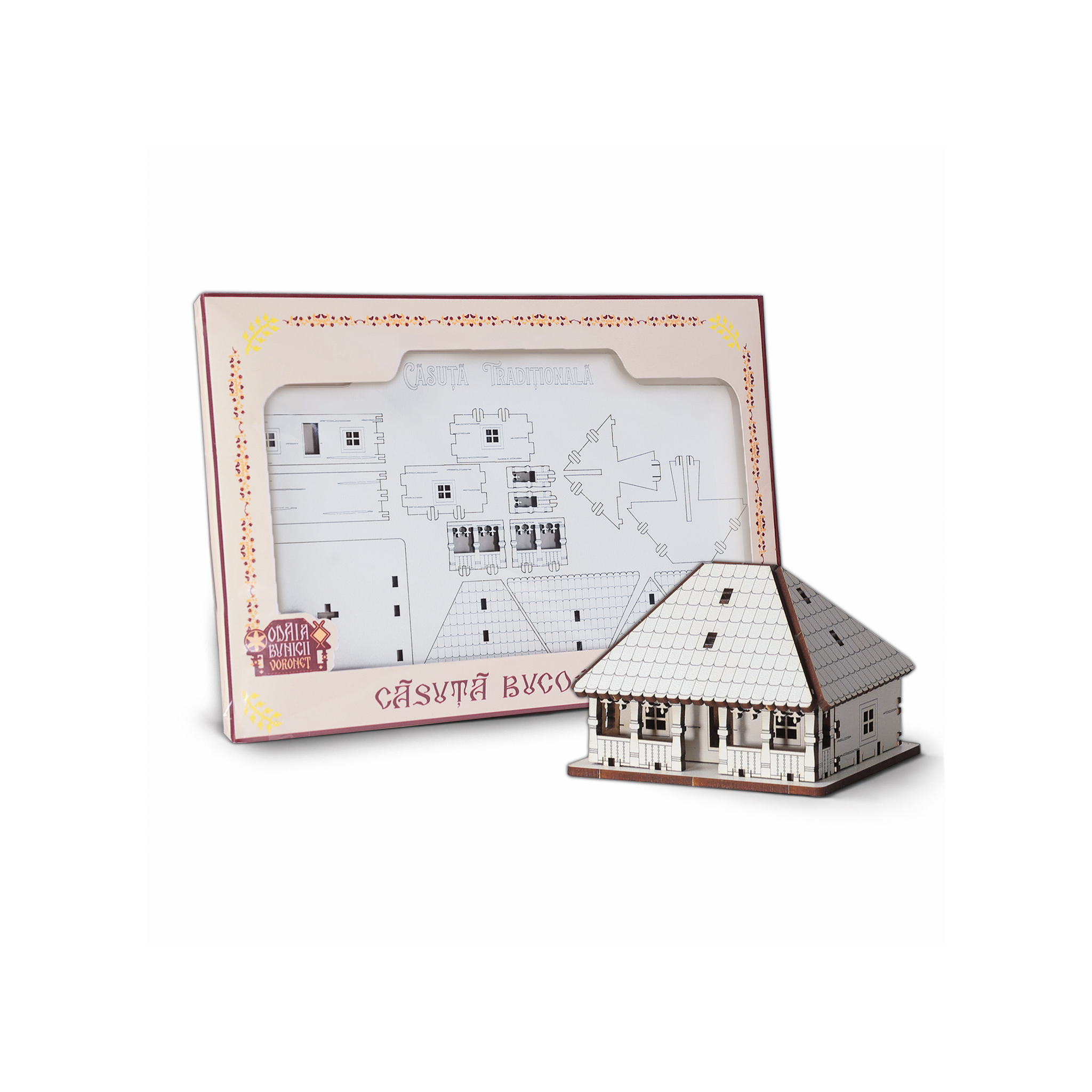 • fiecare piesă din puzzlecreprezinta un detaliu autentic al unei case bucovinene, de la pereți din lemn, până la acoperișuri din țiglă sau șindrilă care pot fi ulterior pictați după propria imaginație.