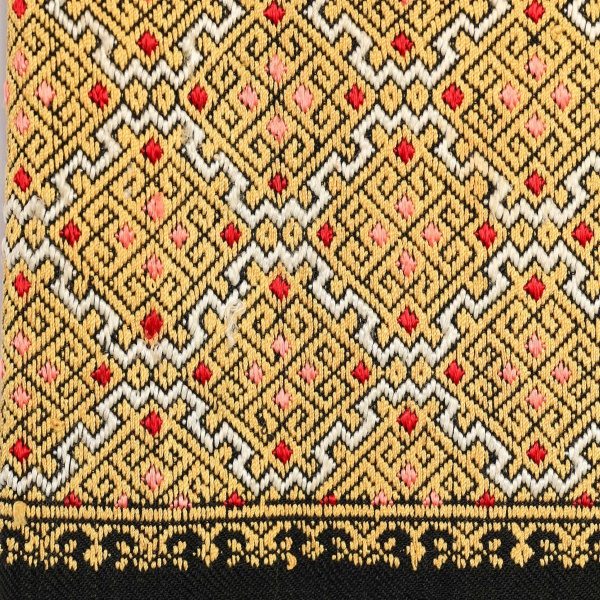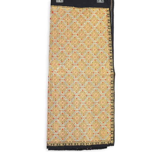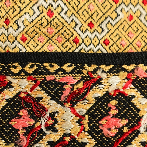 • Material- fondul negru din fir de bumbac și alesătură de mătase.