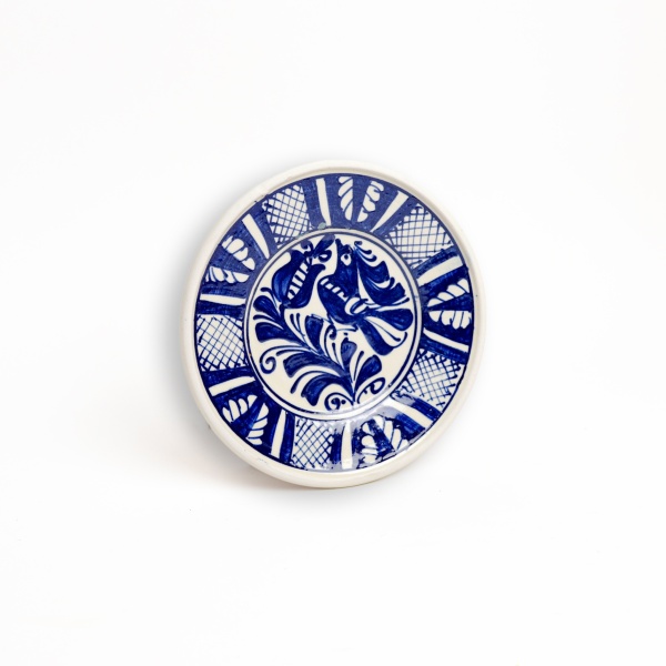 • Farfurie decorată cu motive florale în nuanțe de albastru;