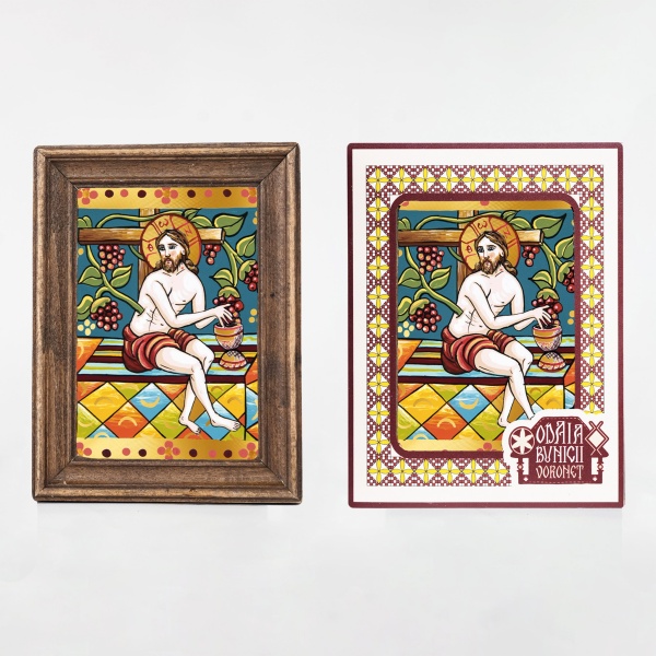 Icoana Hristos si vita de vie (decorata pe sticla) - 15cm x 20cm