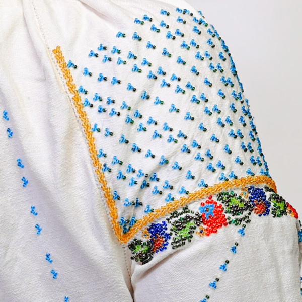 • Iia este împodobită cu mărgele, cusute de mână, care prin unirea acestora formează buchețele de flori;