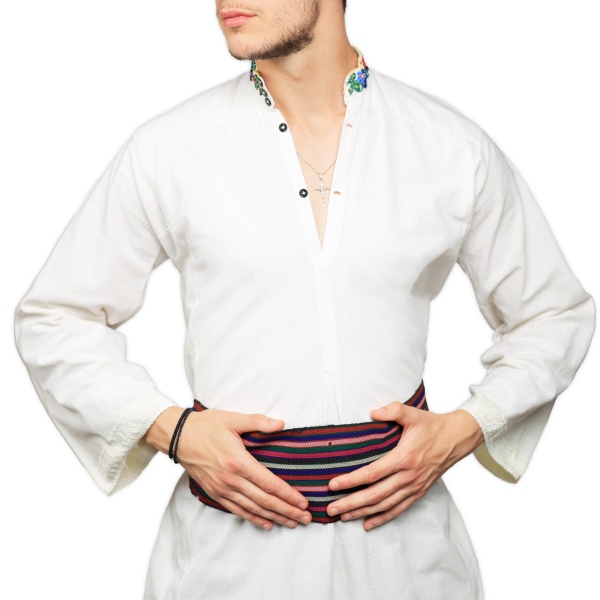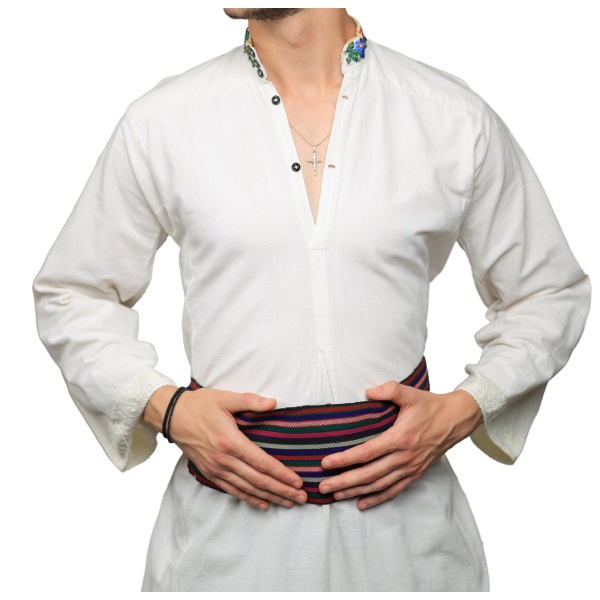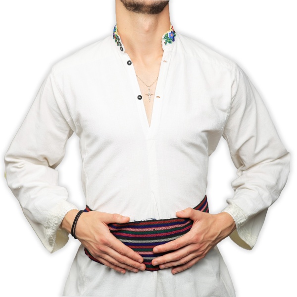 • Cămașă pentru bărbați, cusută manual pe pânză de bumbac țesută în casă.
