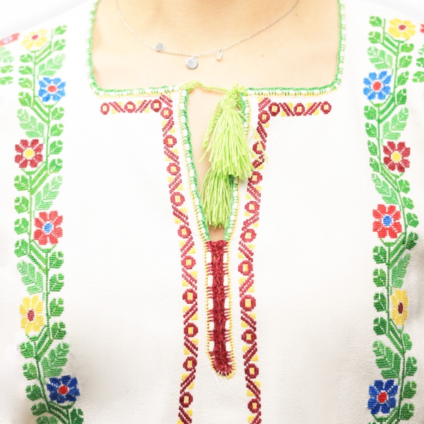 • Cămașă de damă, cusută manual în culori vii pe pânză de casă;