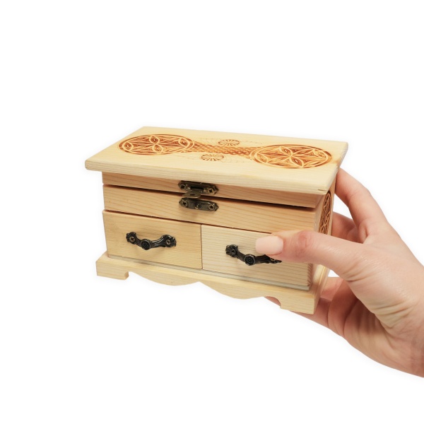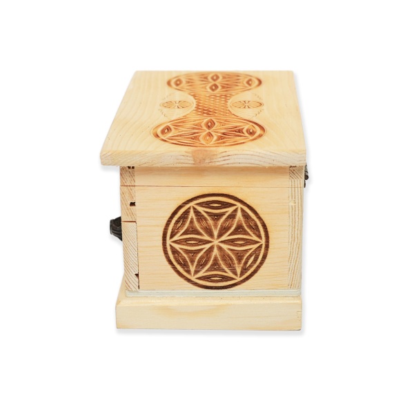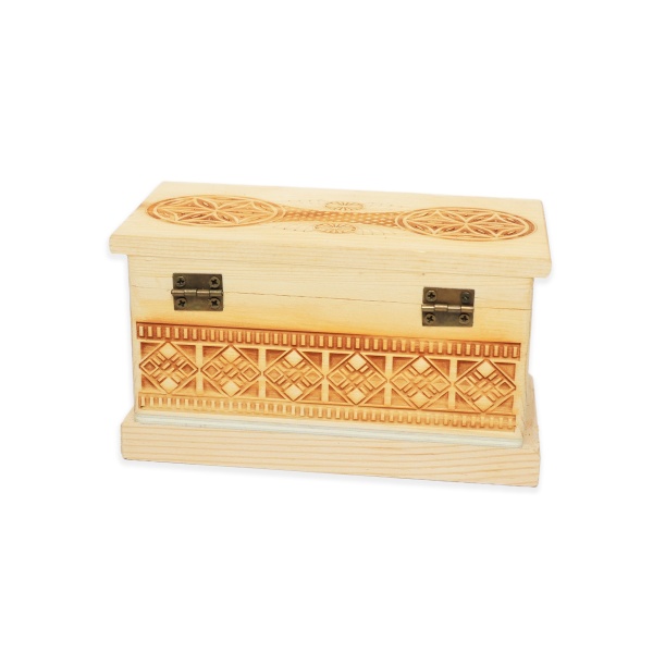 • Materialul cutiei este din lemn, cu model tradițional gravat;