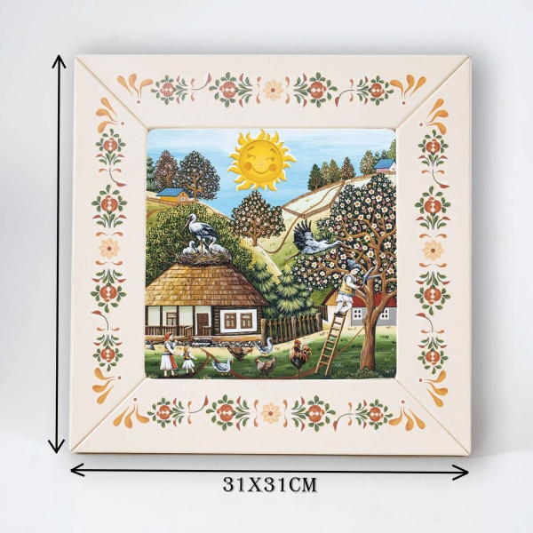 • Tablou pe sticlă, decorat în stil pictură naivă, realizat în atelierul propriu, Odaia Bunicii Voroneț.
