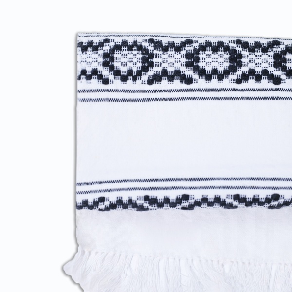 • Cusăturile în nuanțe de negru, dau o cromatică aparte acestui ștergar;