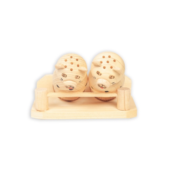 • Fiecare solniță este realizată din lemn de calitate superioară și este personalizată sub formă de cocoș animat și ciupercuță, oferindu-le un caracter jucăuș și plin de viață.